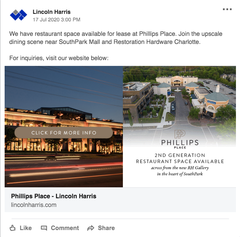 Change the first sentence to something like this…’Come join what is now becoming a major retail hub of South Charlotte at I-485 and Providence Road.’
